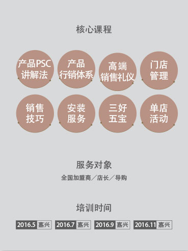 2013年,美爾凱特在行業(yè)內(nèi)率先成立商學(xué)院,結(jié)合市場(chǎng)化的運(yùn)作模式,采用定期開課、分批集中式培訓(xùn)的教學(xué)模式,以終端實(shí)用性的課題為教學(xué)方向,注重終端營銷推廣、店面管理以及銷售技巧等培訓(xùn),致力于為美爾凱特經(jīng)銷商提供實(shí)用實(shí)戰(zhàn)型終端發(fā)展方法,塑造專業(yè)化、職業(yè)化營銷團(tuán)隊(duì),提升終端核心競(jìng)爭(zhēng)力,真正打造出一所美爾凱特獨(dú)有的終端營銷“黃埔軍校”。